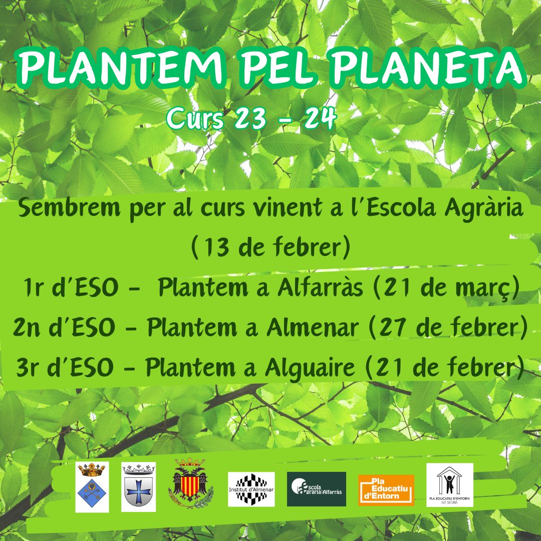 El dimarts 27 de febrer, els alumnes de 2n d'ESO, plantaran a Almenar i els de 1r d'ESO ho faran a Alfarràs el dia 21 de març.