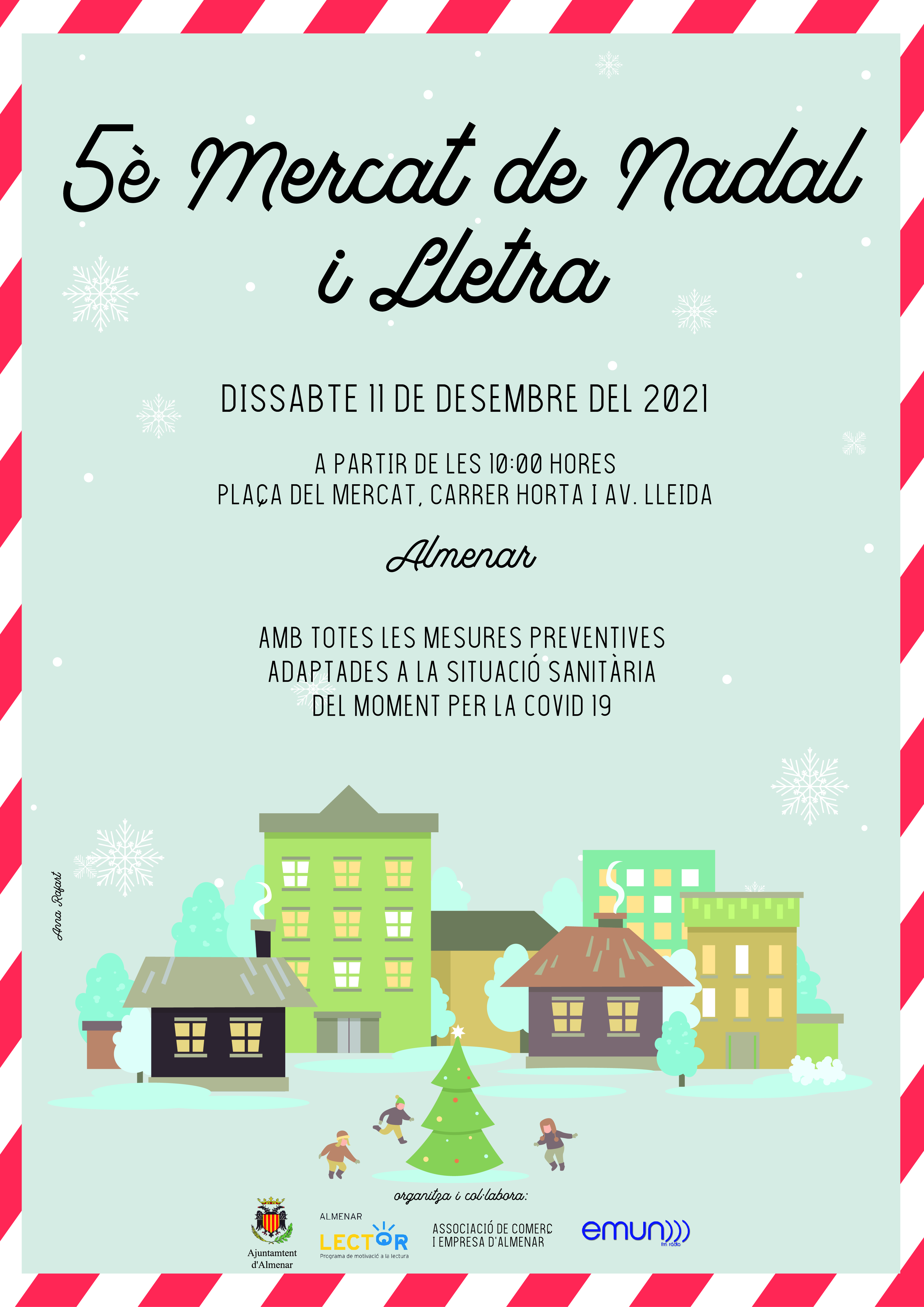 Us convidem a participar al V Mercat de Nadal i Lletra d'Almenar, un mercat lúdic-cultural-comercial on hi trobareu: comerç de proximitat, activitats de foments de la lectura per a infants i adults, i molts llibres.