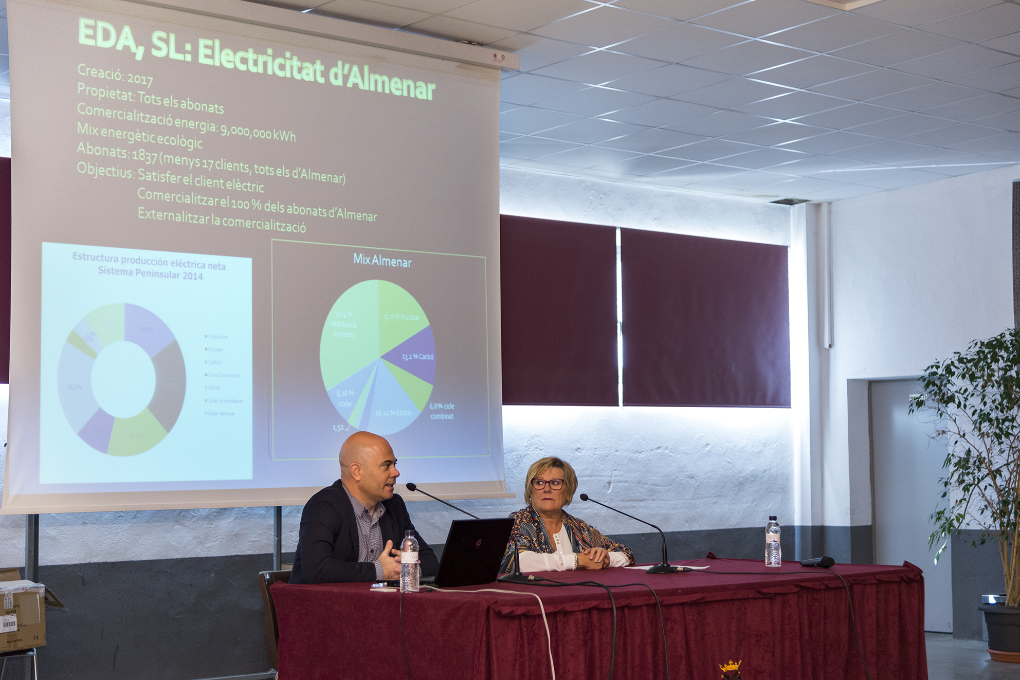 La presentació va estar presidida per la presidenta de EDA i alcaldessa d'Almenar, la sra. Ma. Teresa Malla, i el gerent de l'empresa, el sr. Santi Cornet. Aquesta nova empresa permet una atenció directa i personalitzada amb el client, i a més, part dels beneficis econòmics revertiran en el mateix municipi en patrocinis i millores en equipaments públics.